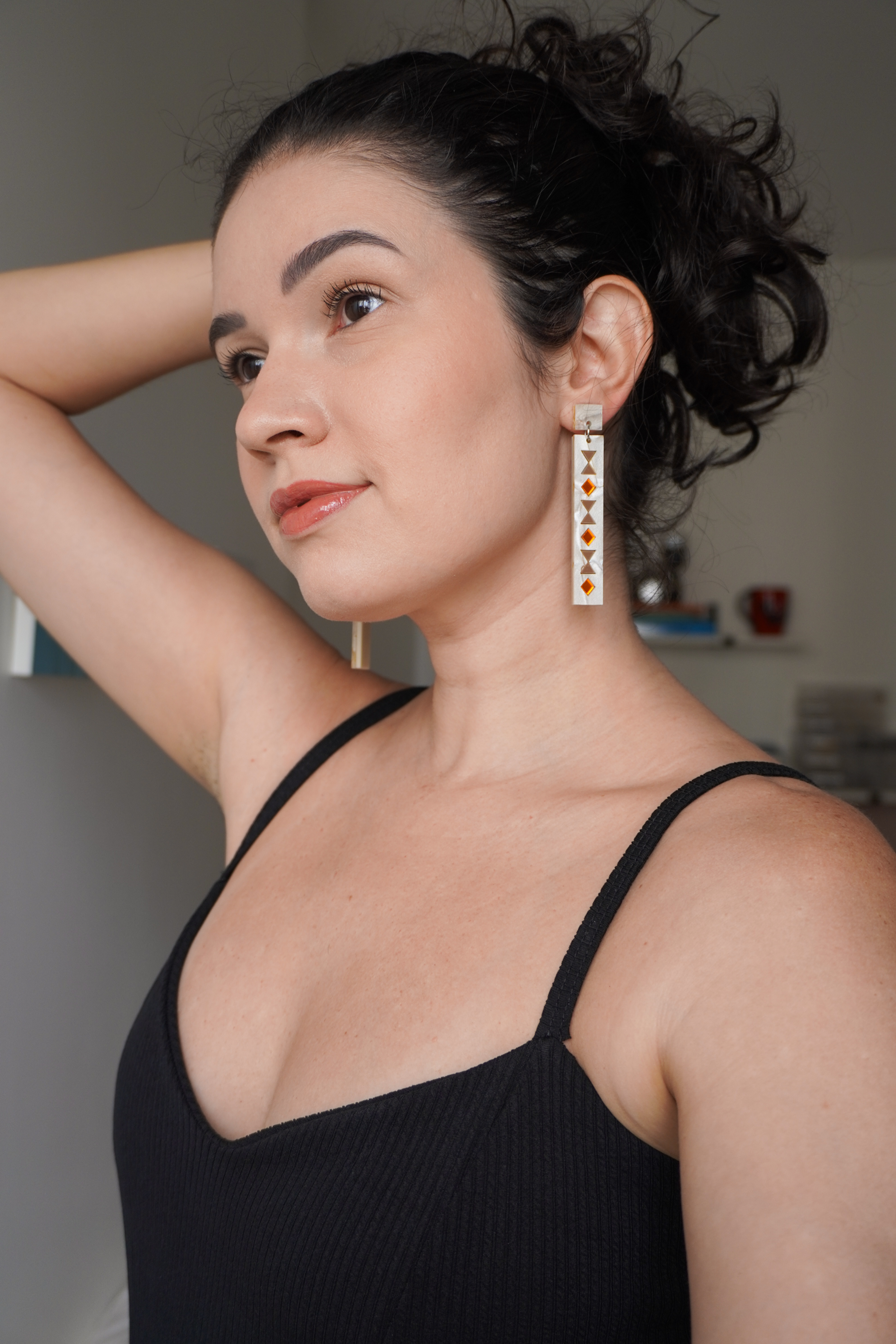 Cada peça foi criada com cuidado e montada à mão por mim, inspirada em movimentos artísticos e na arquitetura que nos cerca, trazendo uma moda que traz arte e criatividade de forma elegante para o seu dia a dia.